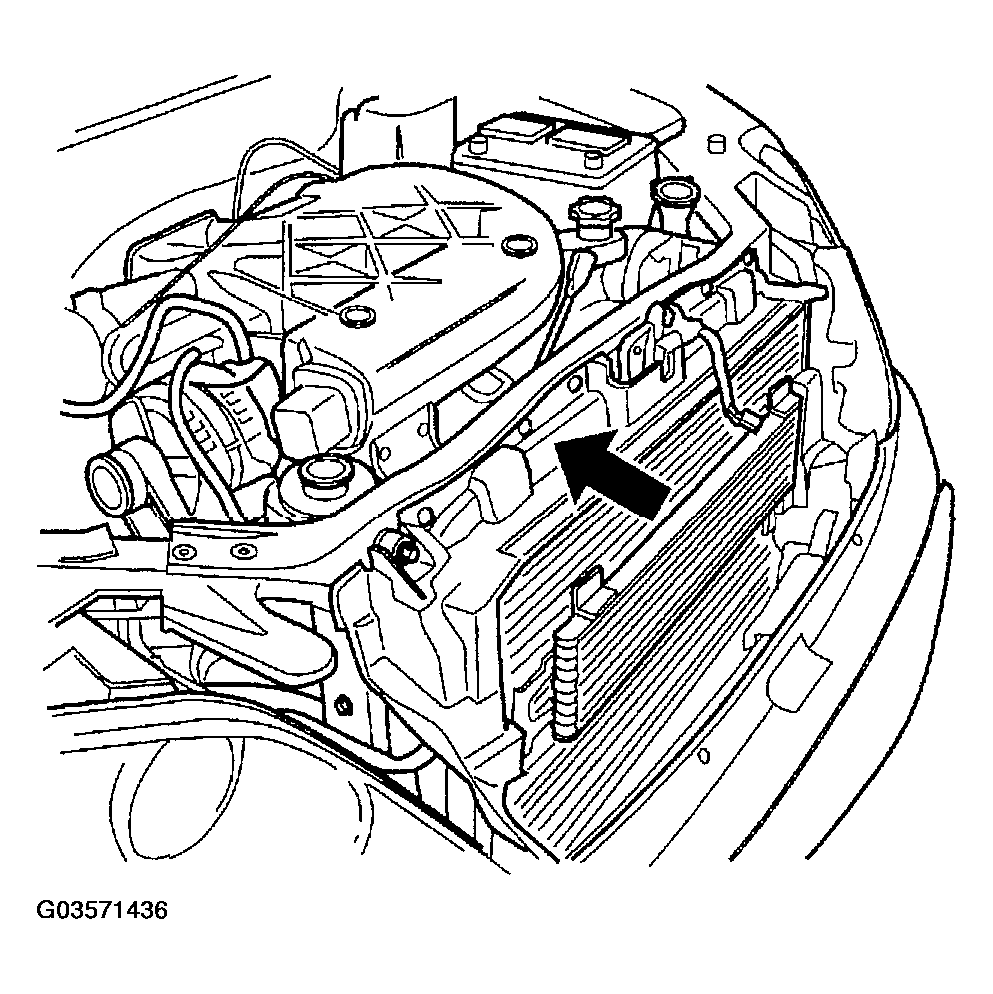 19. Relocate and install (Figure) and (Figure) the upper radiator crossmember, (Refer to RADIATOR CROSSMEMBER ).