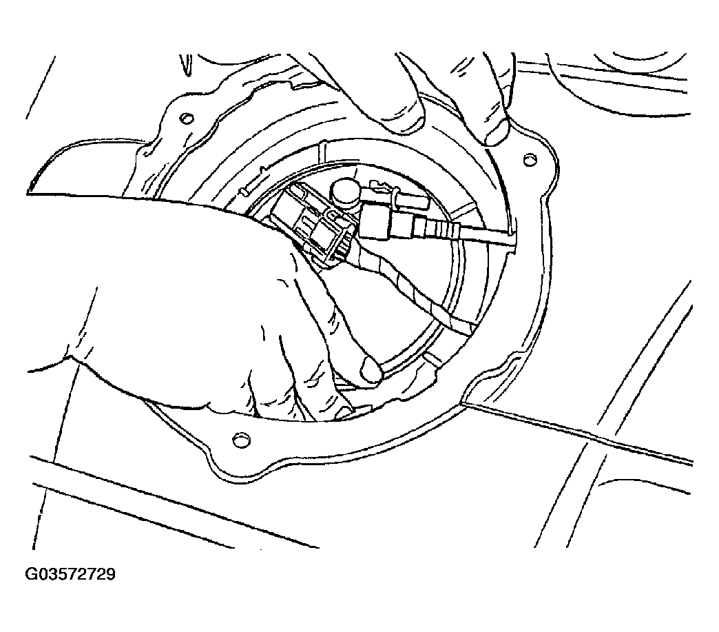 - Install the Fuel Pump Module lock ring (Figure).NOTE: Use a brass punch to Install the 1/4 turn lock ring. Make sure all 5 tabs are properly seated.