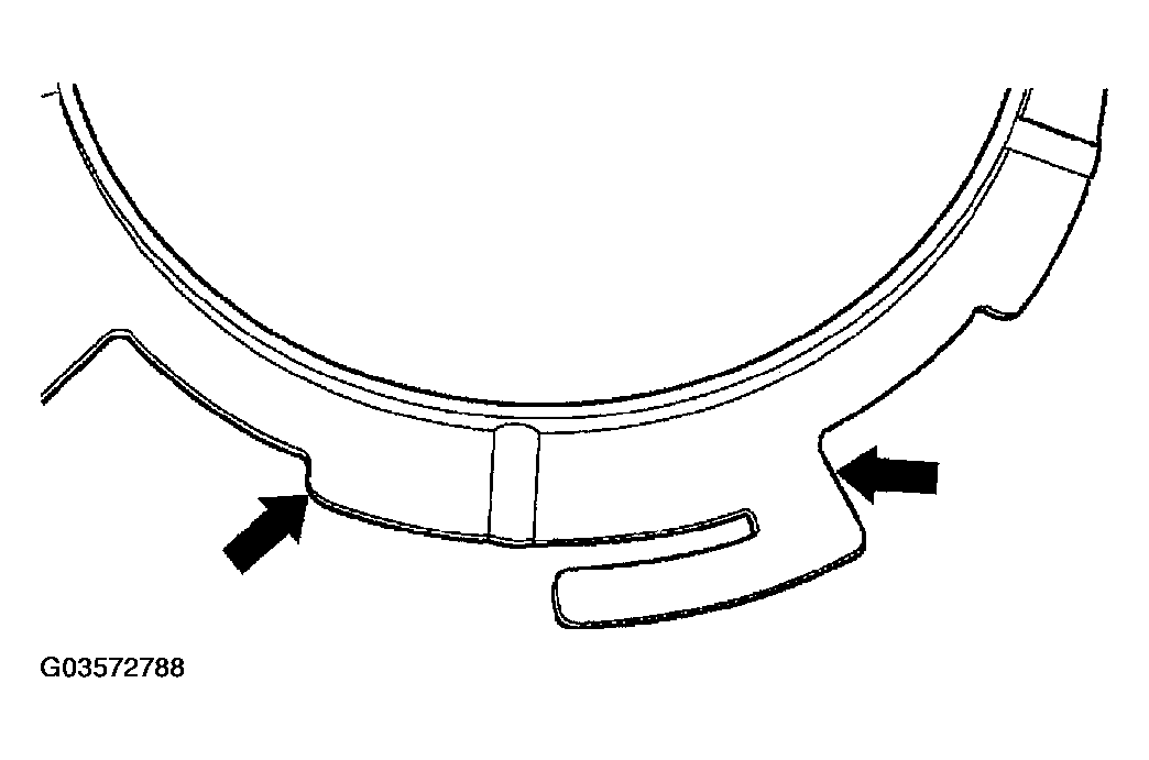 - Remove the Fuel Pump Module lock ring (Fig 2).NOTE: Use a brass punch to remove the 1/4 turn lock ring. Make contact only at the points shown (Fig 3).