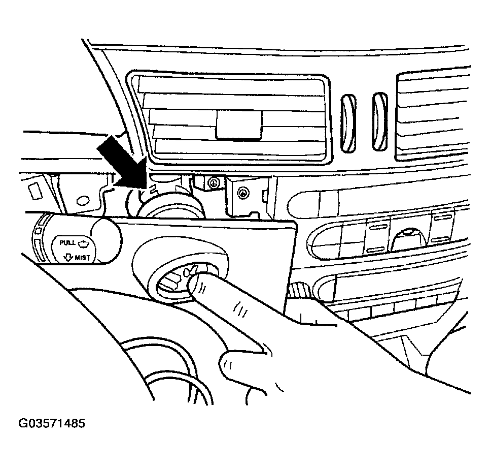 - Depress the locking tab on the ignition switch housing (Fig 2).