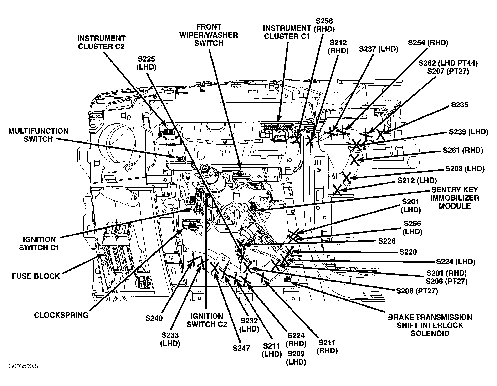 At lower left front of dash. See Figure