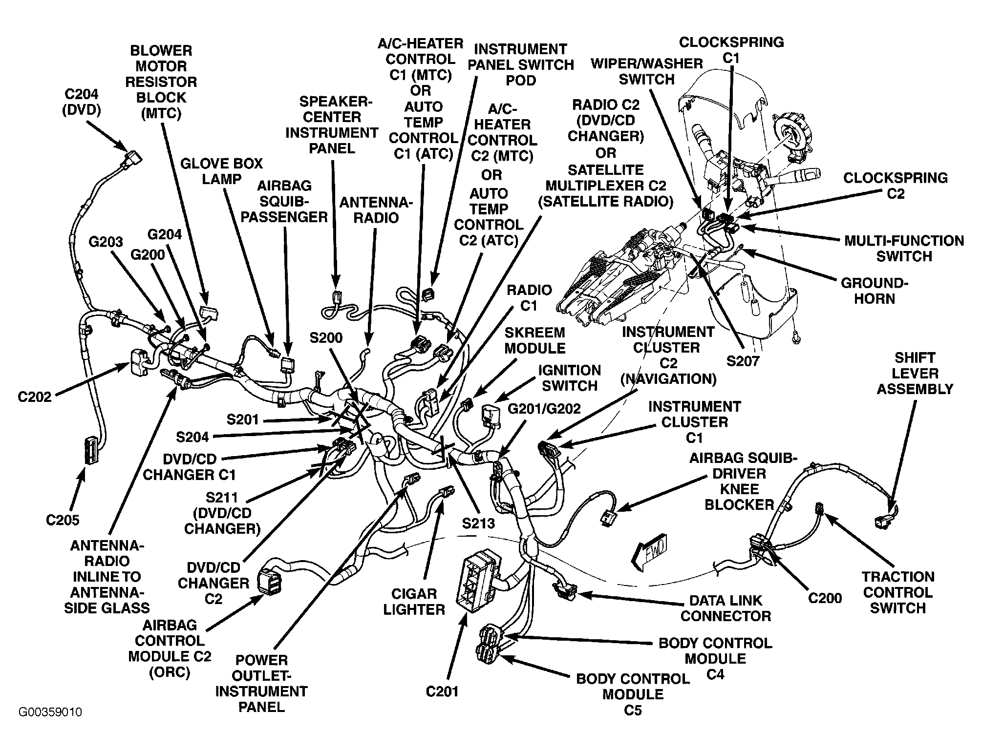 | Airbag Control Module (ORC) | Under front of center console. See Figure. |