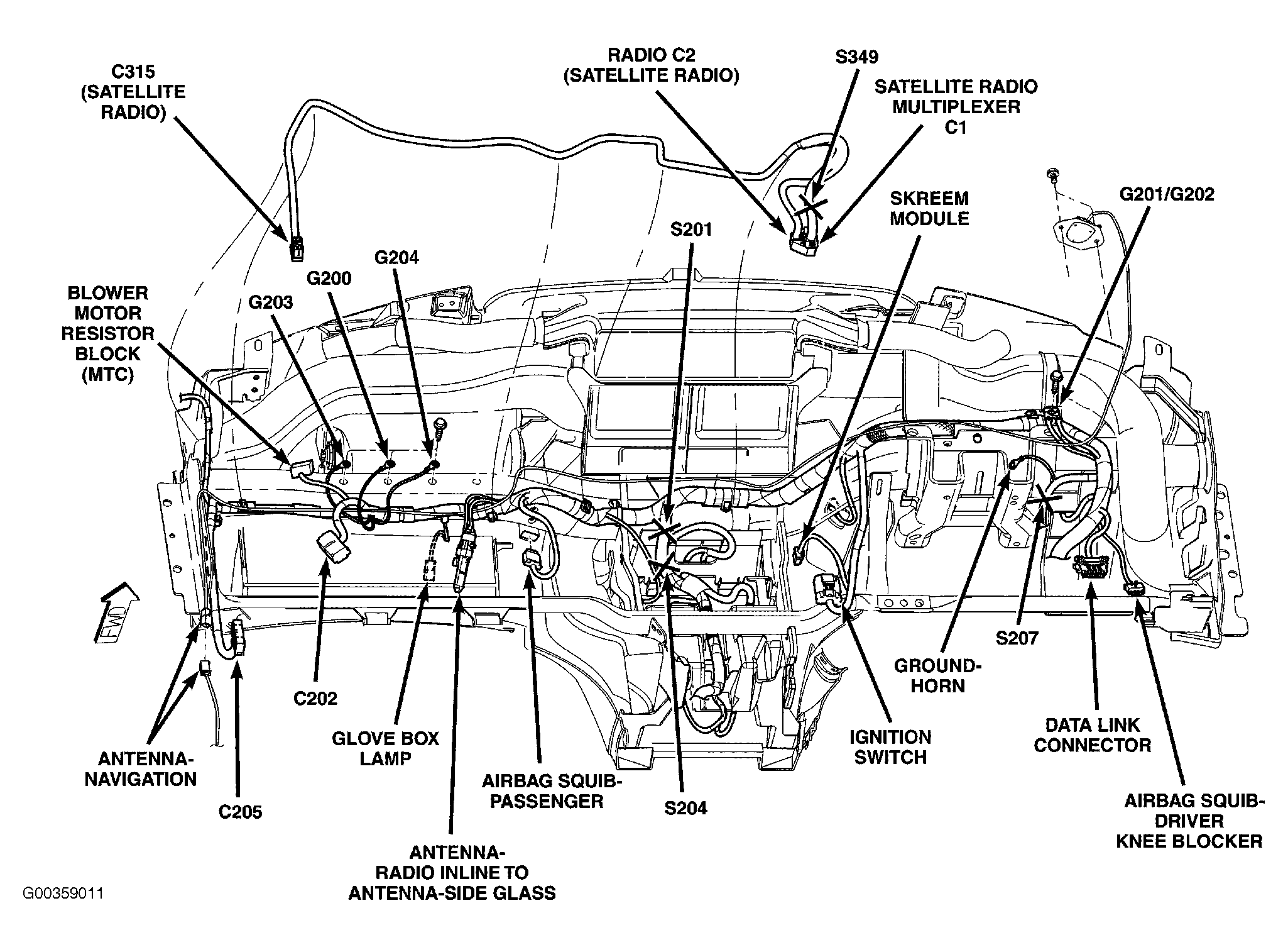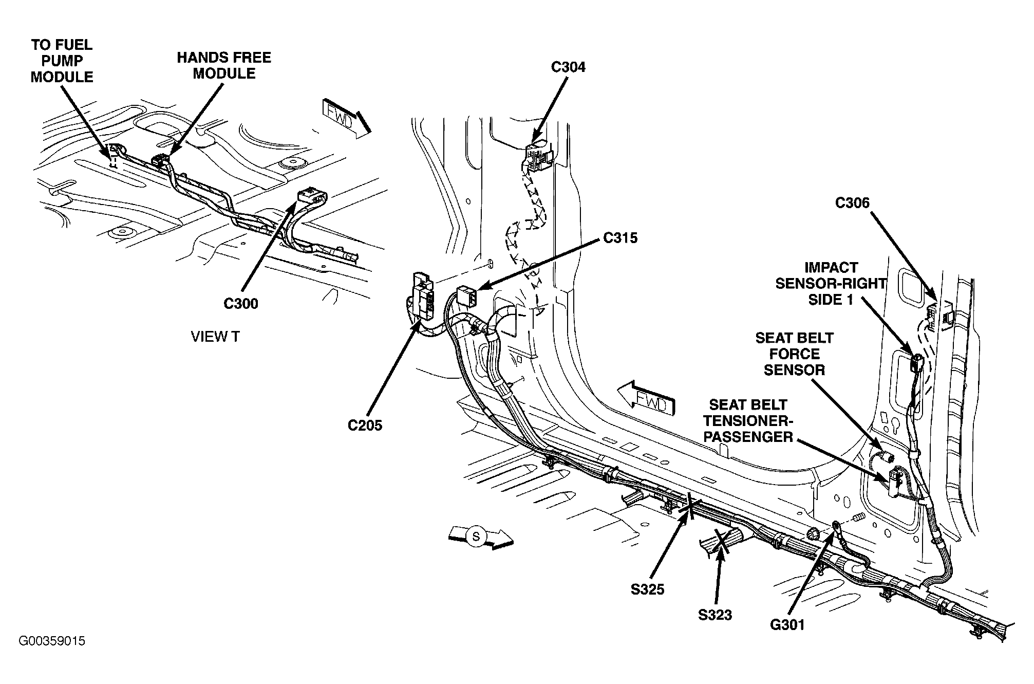 | Hands Free Module | Center of vehicle floor. See Figure. |