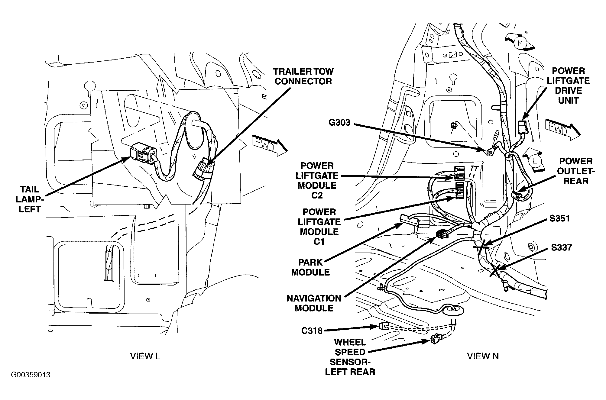 | Power Liftgate Module | Left rear corner of vehicle. See Figure. |