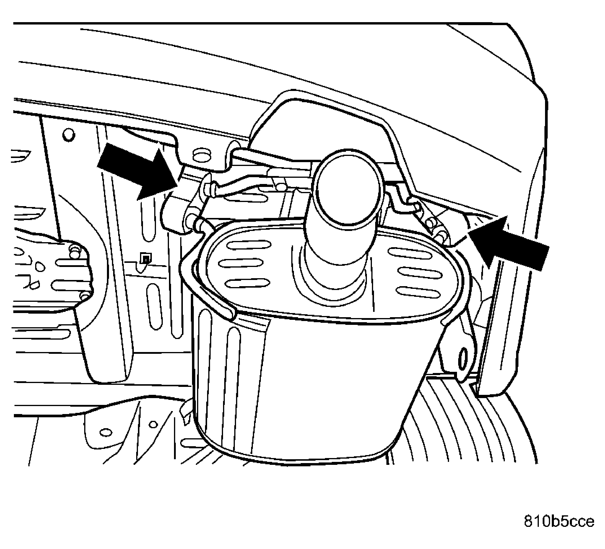 - Install the center exhaust hanger rubber grommets. See Figure.