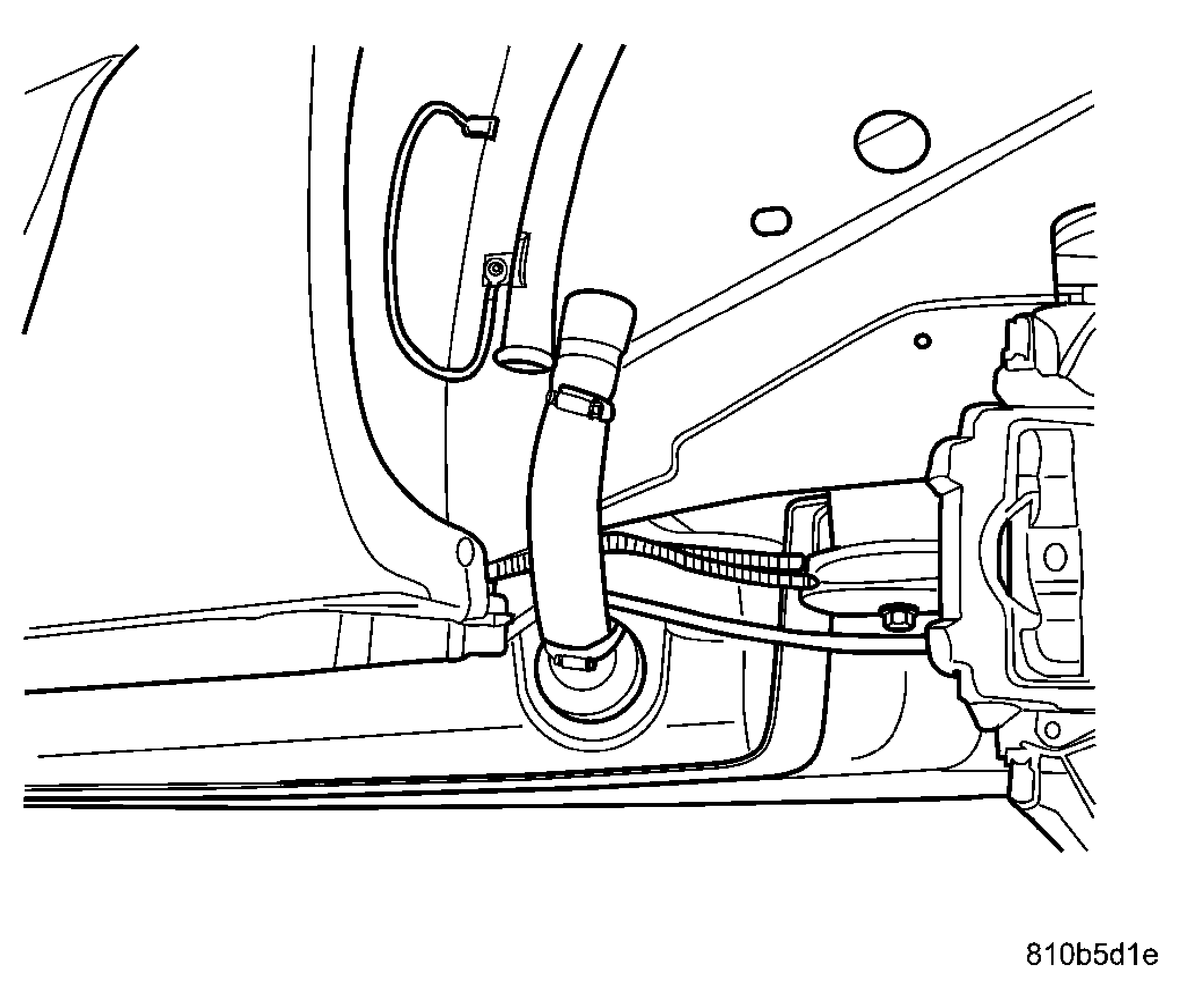 - Install the fuel filler tube to the rubber hose at fuel tank. See Figure.