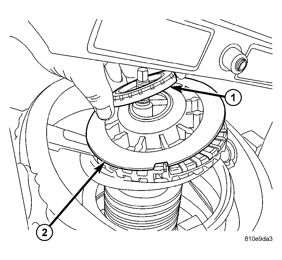 - If pivot bearing has been removed from upper seat, install pivot bearing on top of upper spring seat. See Figure. Bearing must be installed on upper seat with smaller diameter side of pivot bearing toward spring seat. Be sure pivot bearing is sitting flat on spring seat once mounted.