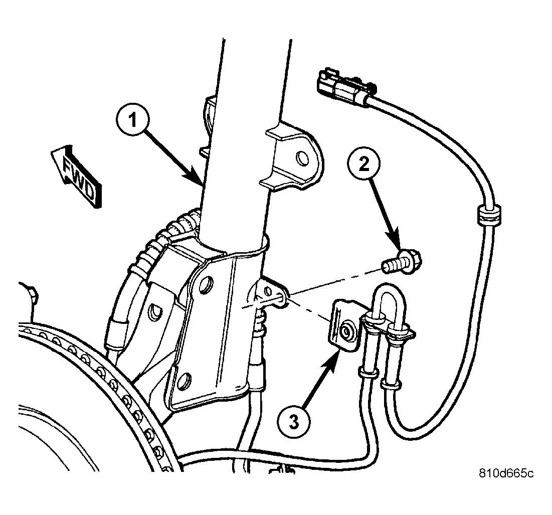 - Attach wheel speed sensor routing bracket to strut assembly. See Figure. Tighten screw to 13 N.m (115 in. lbs.) torque.