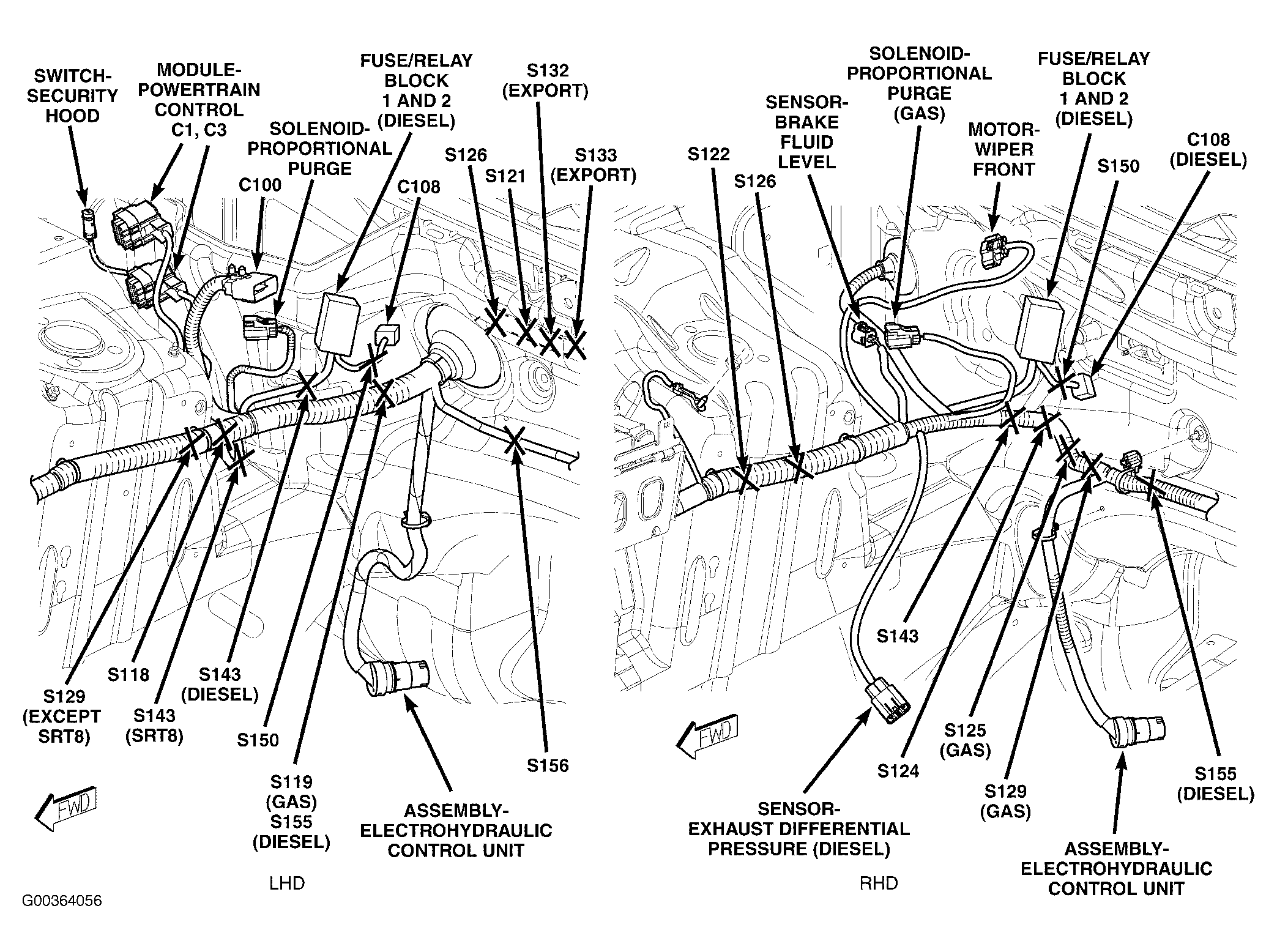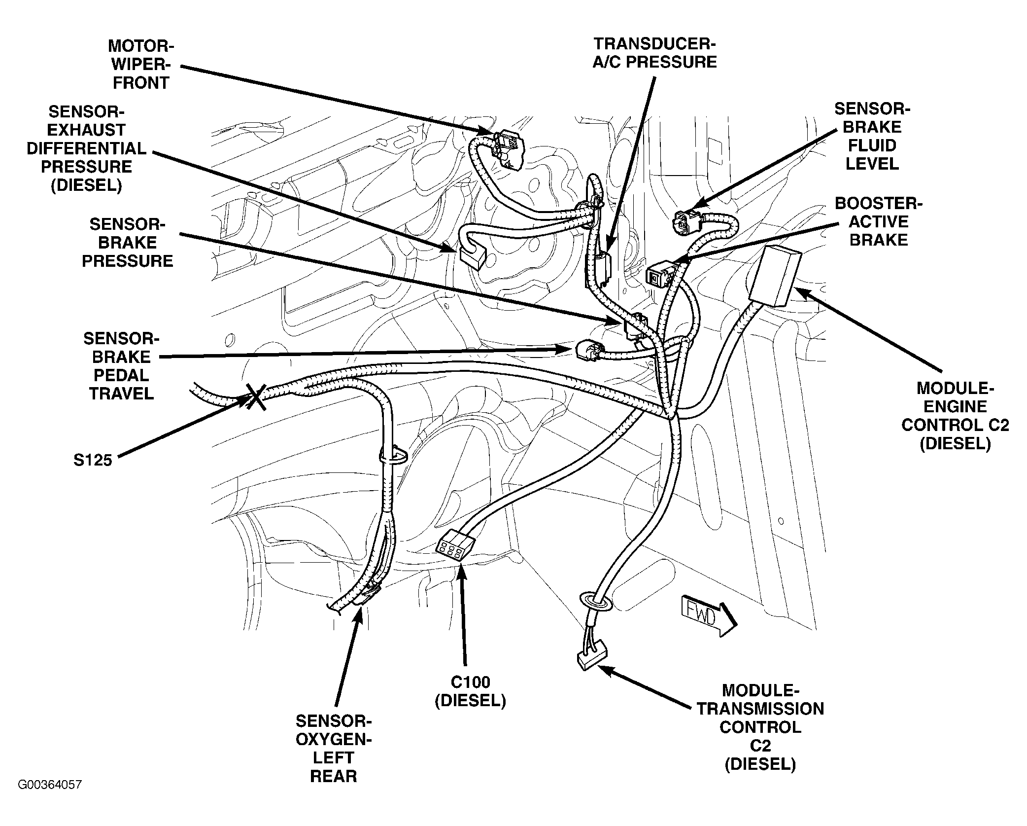 | Engine Control Module C2 (Diesel) | Left rear of engine compartment. |