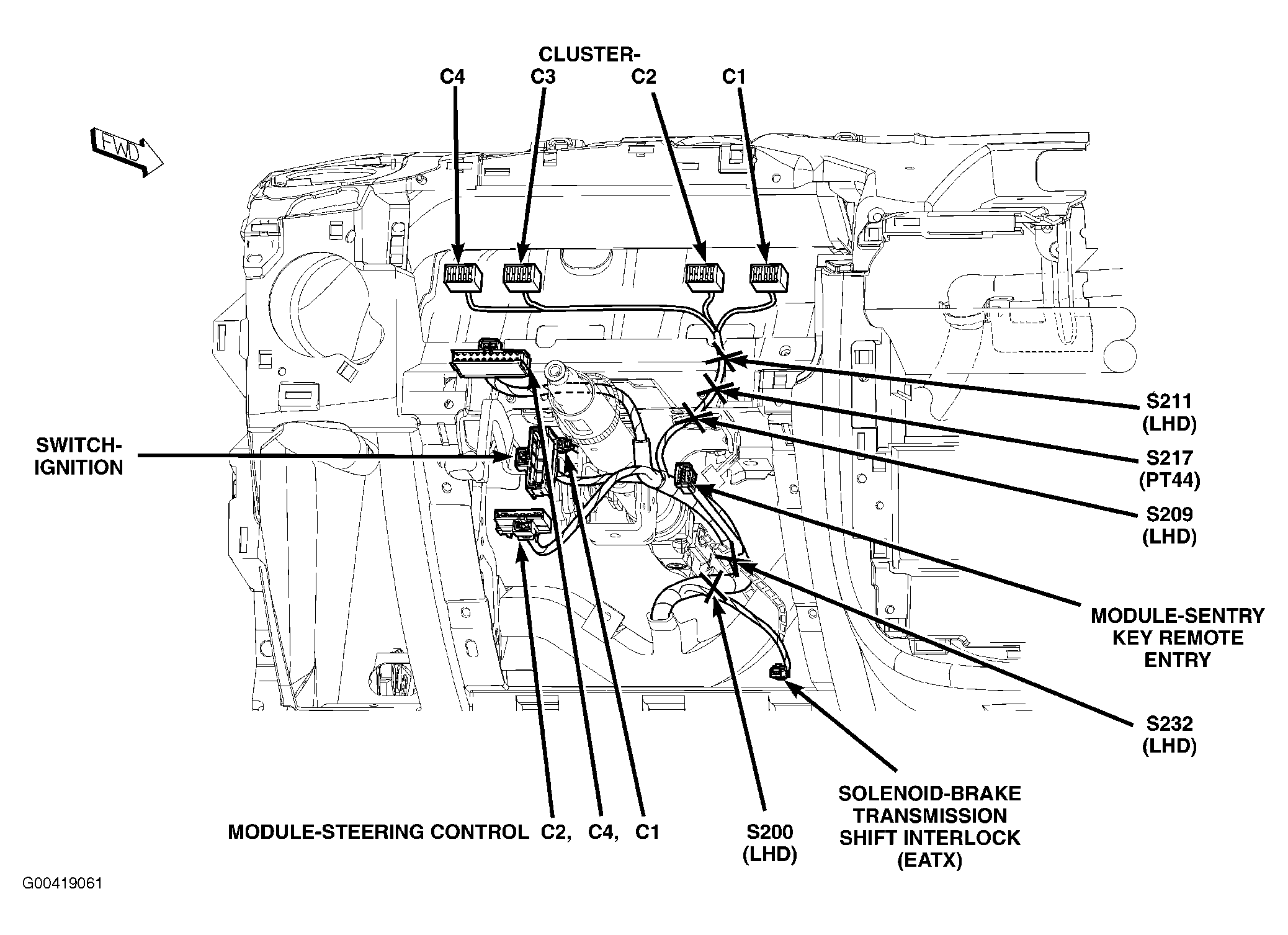 | Sentry Key Remote Entry Module | On steering column, near ignition lock cylinder. See Figure. |