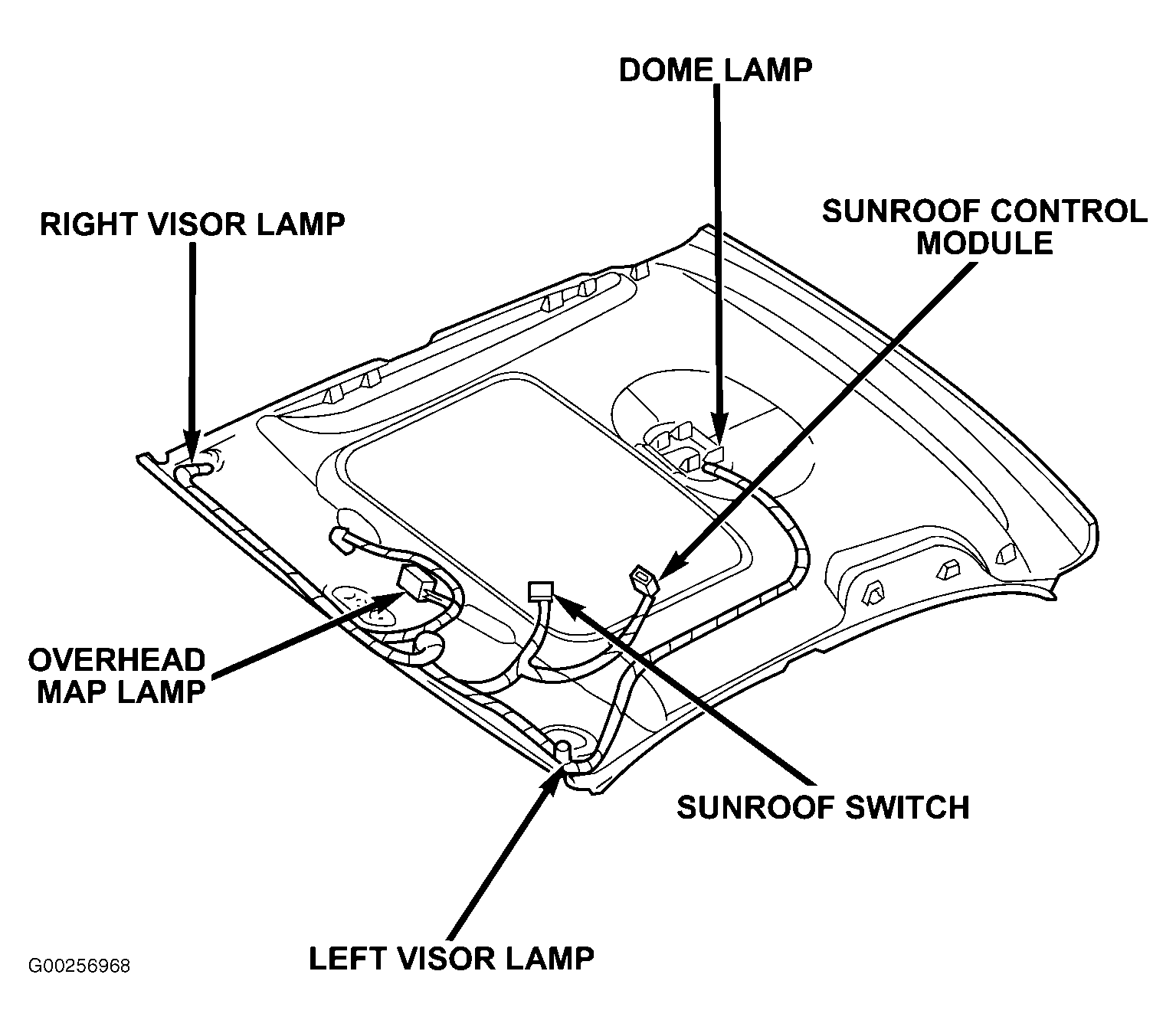 | Sun Roof Control Module | In left headliner. See Figure . |