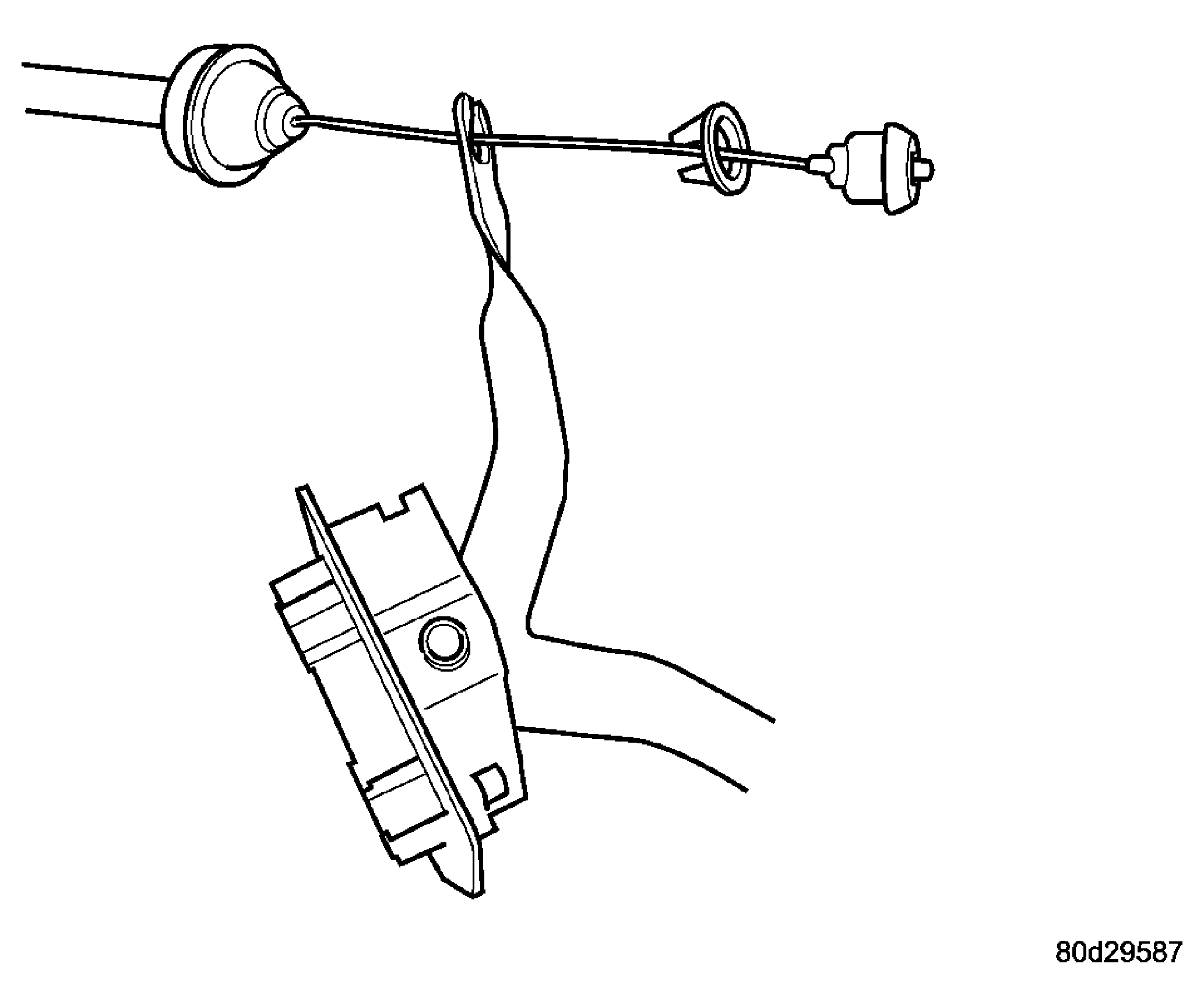 - From the engine compartment, hold the throttle body lever in the wide open position and install the throttle cable. See Figure.
