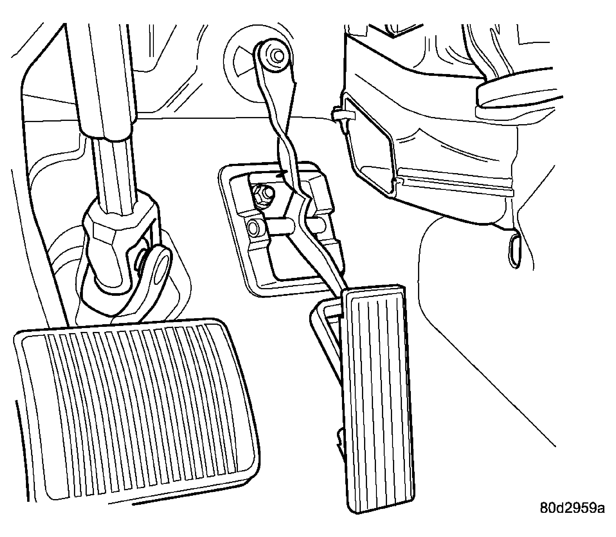 - Position accelerator pedal assembly on dash panel. Install retaining nuts. Tighten retaining nuts to 12 N.m (105 in. lbs.) torque. See Figure.