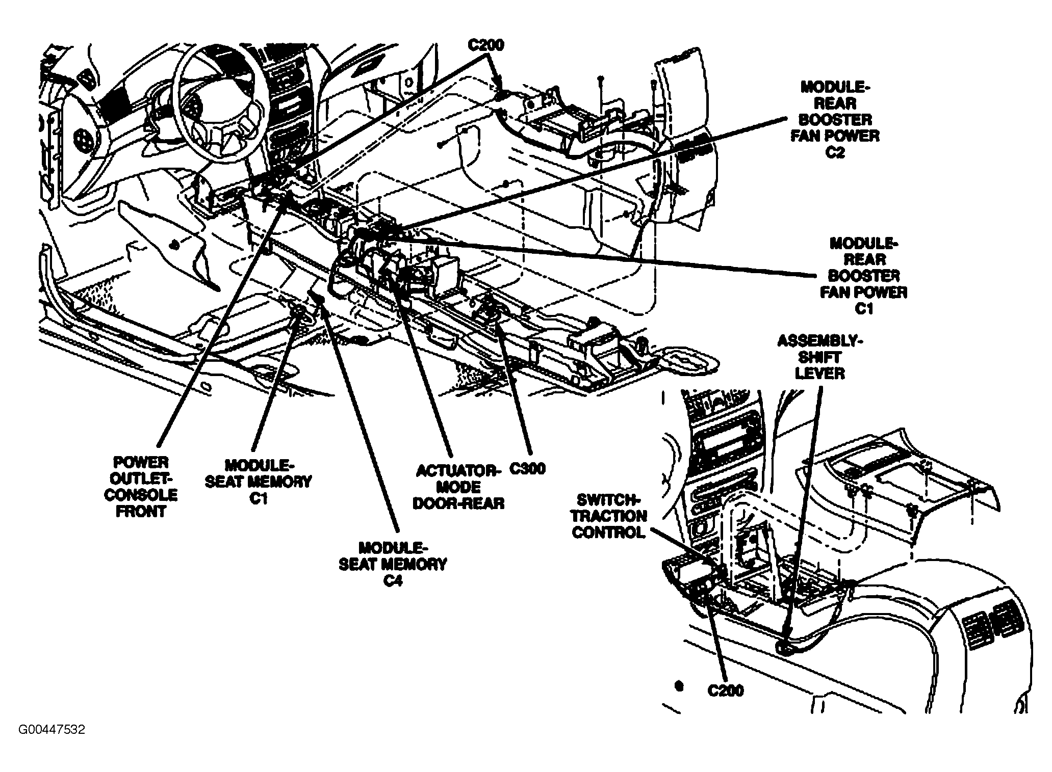 | Rear Booster Fan Power Module | Under rear of center console. See Figure. |