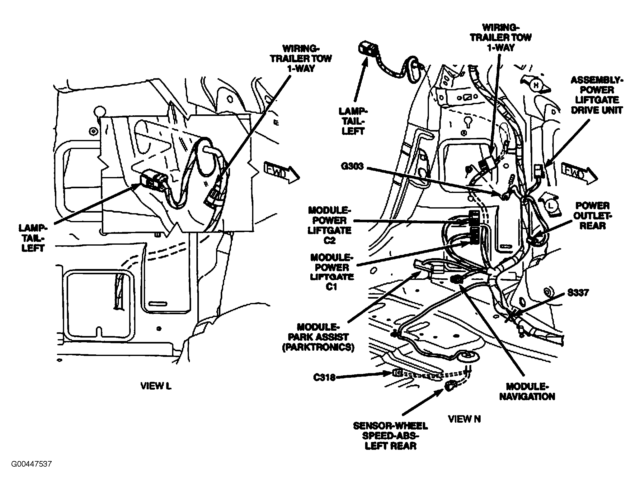 | Park Assist (Parktronics) Module | Behind left rear quarterpanel. See Figure. |