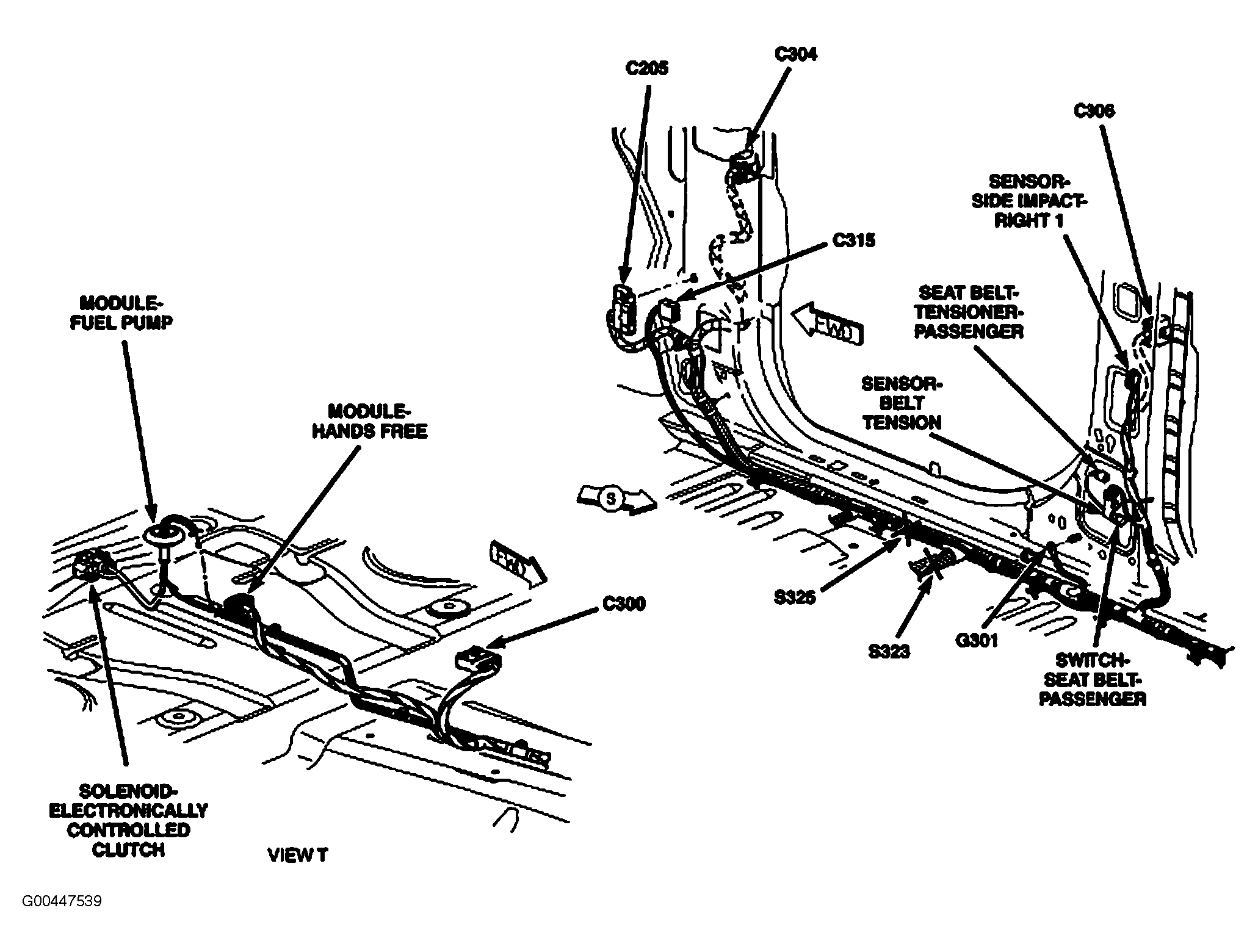 | Hands Free Module | Center of vehicle floor. See Figure. |