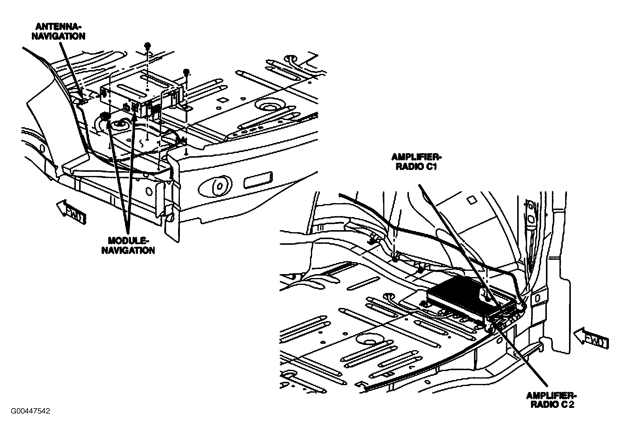 | Navigation Unit | Behind left rear quarterpanel. See Figure. |