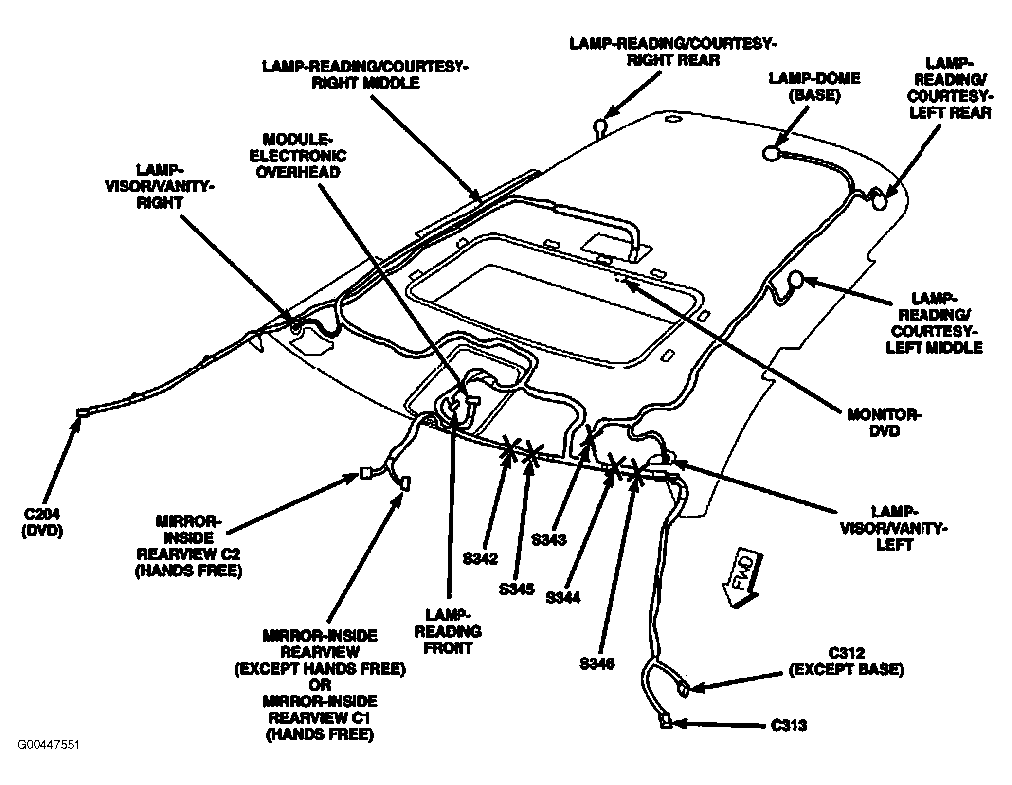 | Overhead Electronic Module | Center front of roof. See Figure. |