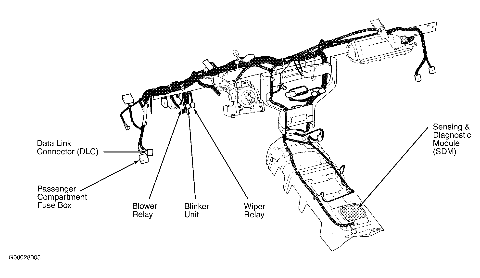 | Sensing & Diagnostic Module (SDM) | Below center floor console. See Figure . |