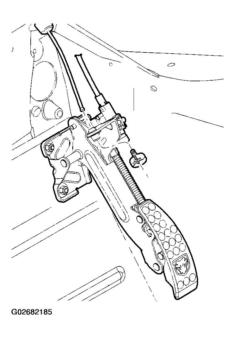 - From inside the vehicle, hold up the pedal and install the throttle cable and cable retainer in the upper end of the pedal shaft (Figure