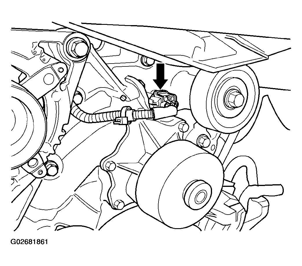 The Camshaft Position Sensor is located above the water pump and under the throttle body (Fig 1 ).