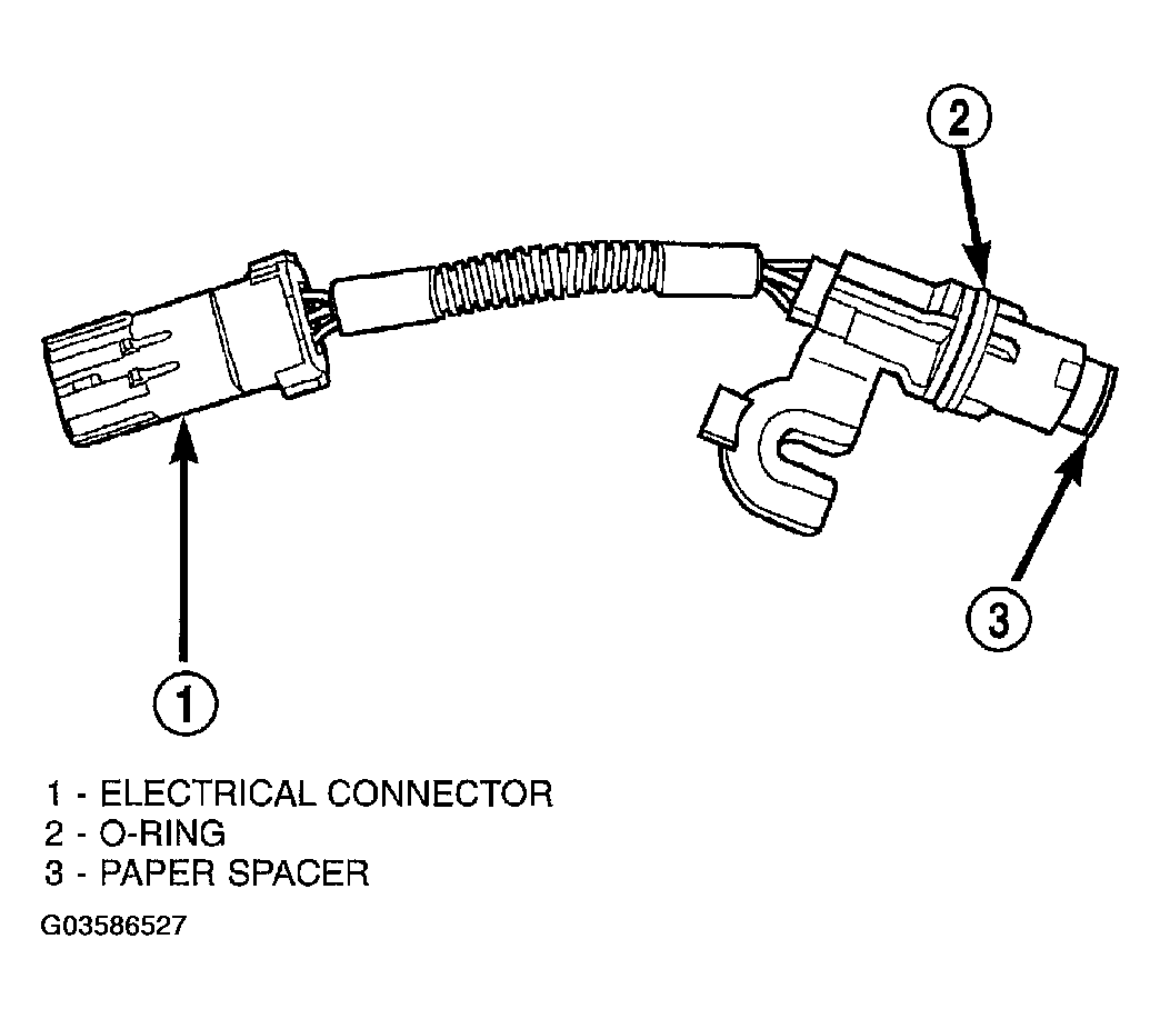 The camshaft position sensor provides cylinder identification to the Powertrain Control Module (PCM) (Fig 1). The sensor generates pulses as groups of notches on the camshaft sprocket pass underneath it (Fig 2). The PCM keeps track of crankshaft rotation and identifies each cylinder by the pulses generated by the notches on the camshaft sprocket. Four crankshaft pulses follow each group of camshaft pulses.