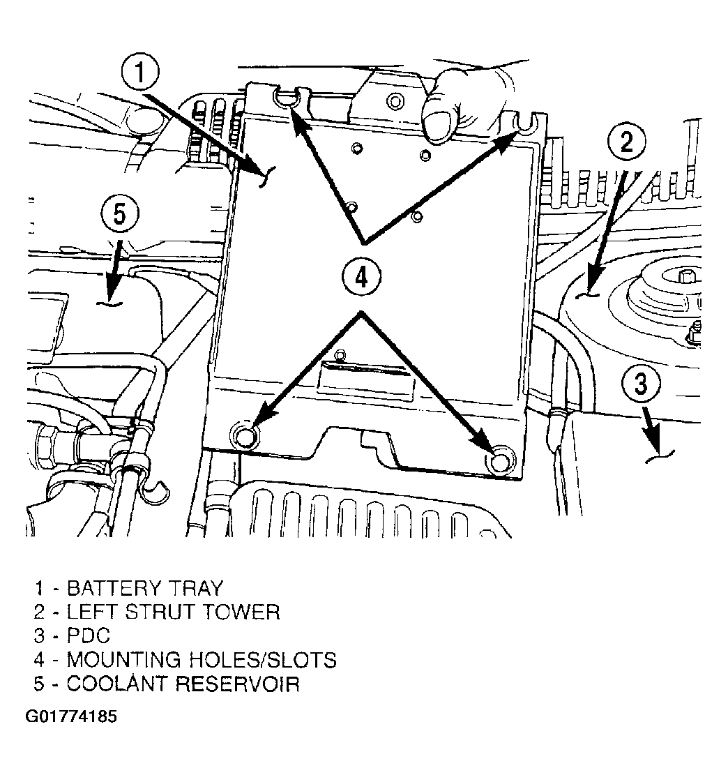 - Power Distribution Center (PDC) - Visually inspect the B+ connections at the PDC for physical damage and loose or corroded harness connections. See Figure.