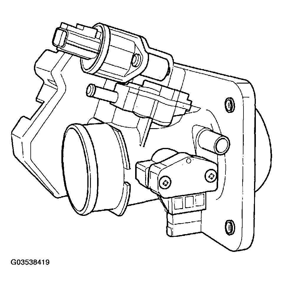 The Throttle Position Sensor (TPS) connects to the throttle blade shaft. The TPS is a variable resistor that provides the PCM with an input signal (voltage). The signal represents throttle blade position. As the position of the throttle blade changes, the resistance of the TPS changes.