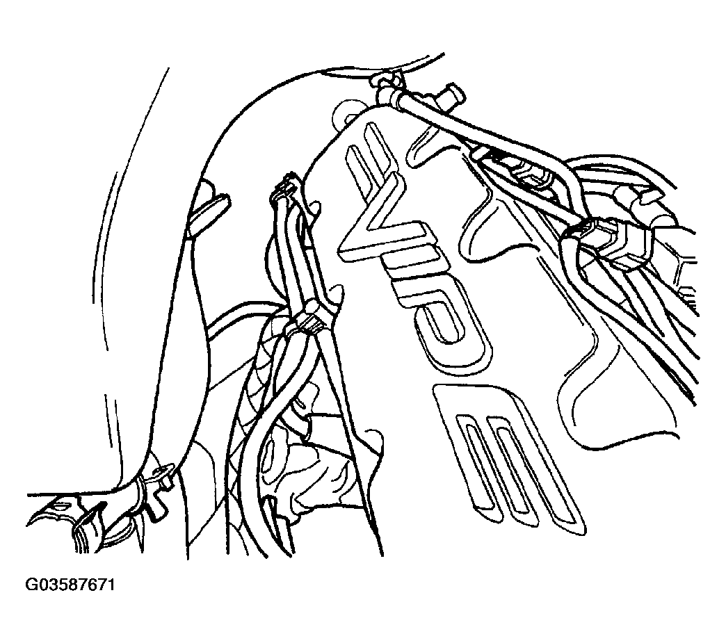NOTE: When replacing the spark plug and coil cables, route the cables correctly and secure them in the proper retainers. Failure to route the cables properly may cause the radio to reproduce ignition noise. It could also cause cross-ignition of the plugs, or, may short-circuit the cables to ground.