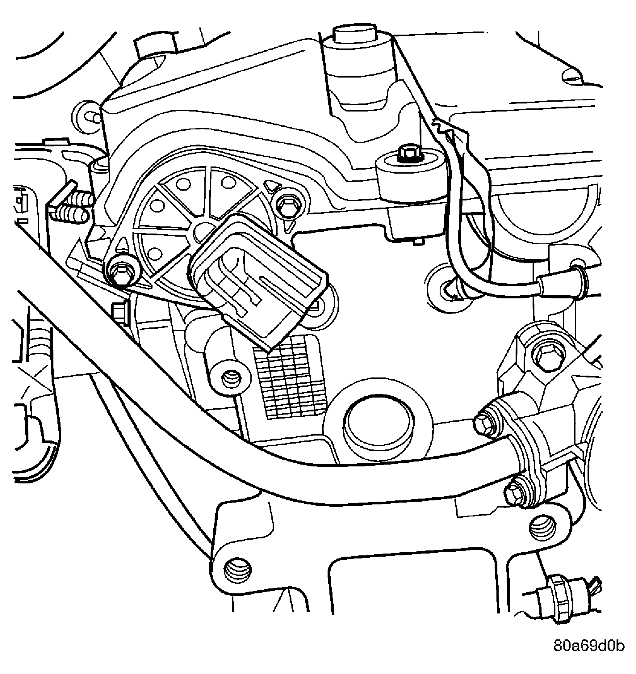 The camshaft position sensor for the 3.3/3.8L is mounted in the front of the timing case cover and the camshaft position sensor for the 2.4L is mounted on the end of the cylinder head. See Figure and Figure.