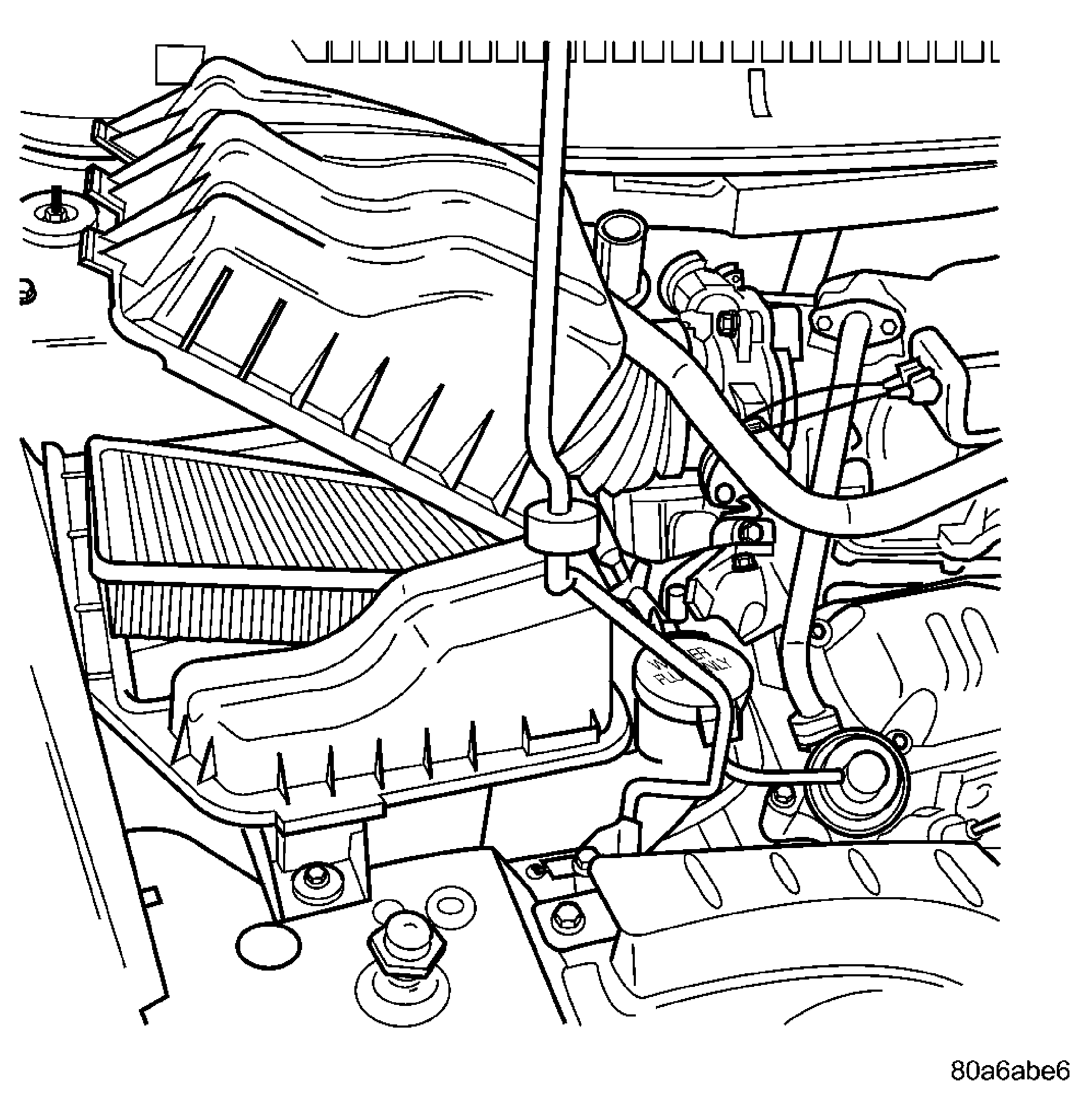 - Install the air box cover and inlet hose. See Figure.