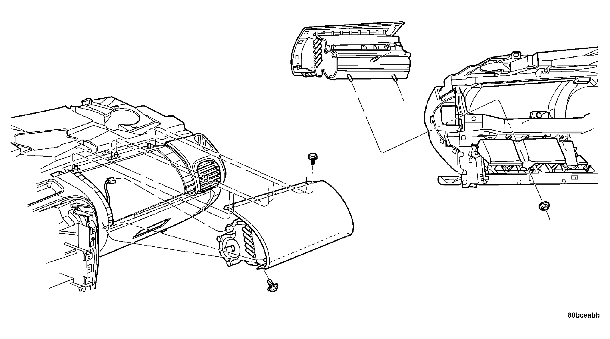 3. Install the two passenger airbag cover screws attaching cover to the front lower instrument panel. Tighten screws to 2 N.m (20 in. lbs.) torque.