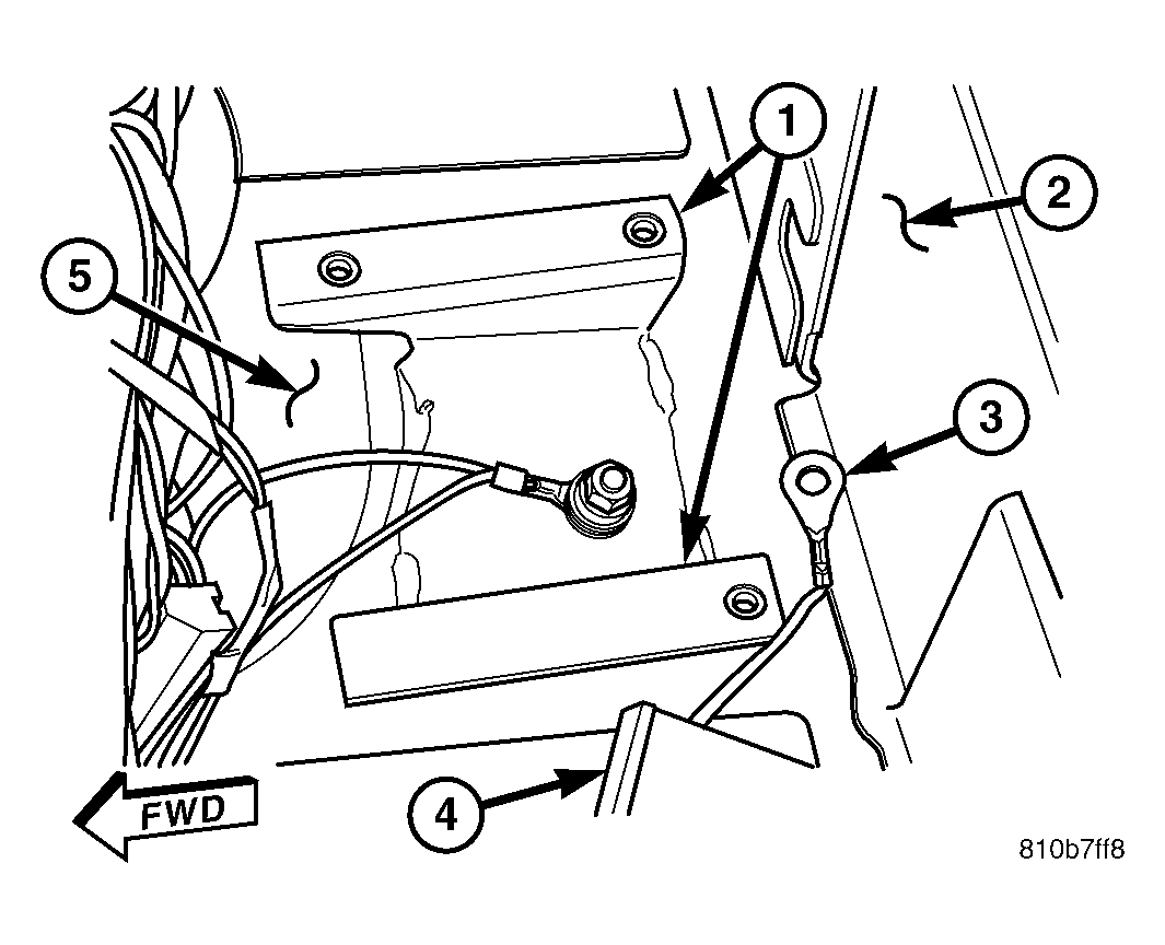 The Airbag Control Module (ACM) is secured with three screws to the top mounting surface of a stamped steel bracket that is welded onto the floor panel within the seat riser underneath the driver side front seat in the passenger compartment of the vehicle. See Fig 1. A molded plastic protective cover is installed over the ACM and secured with integral snap features to a flat metal base plate sandwiched between the bottom of the ACM and the mounting bracket on the floor panel. See Fig 2. This cover is designed to shield the ACM and its wire harness connection from other electrical components and wiring located within the seat riser area beneath the driver seat, and must always be reinstalled following service removal.