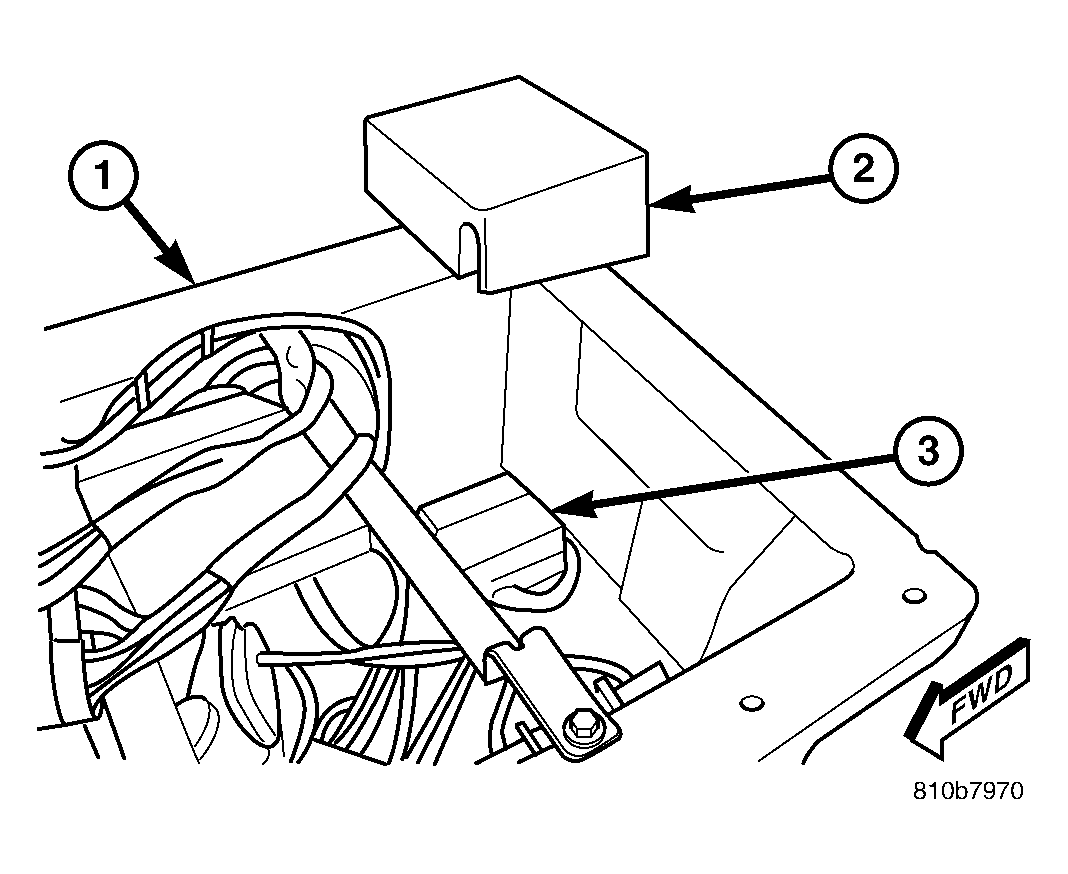 1 - SEAT RISER 2 - COVER 3 - ACM - Remove the three screws that secure the ACM to the bracket that is welded onto the floor panel under the driver side front seat. See Fig 5.