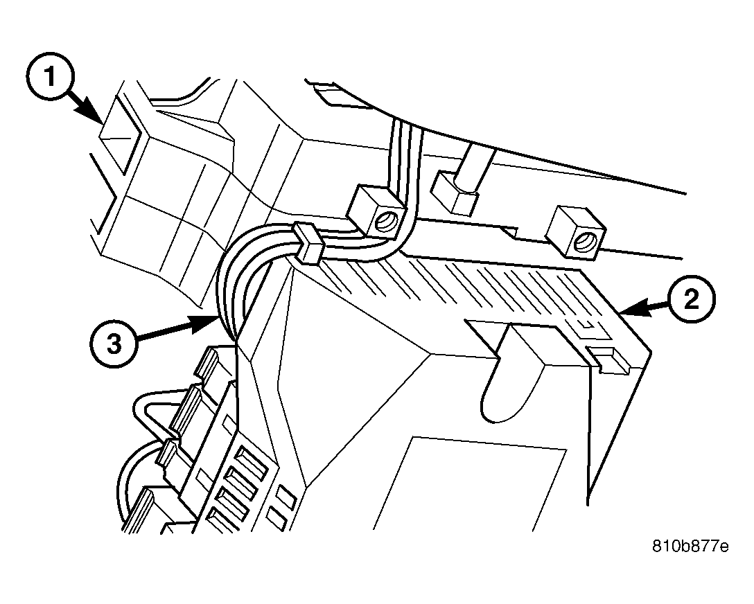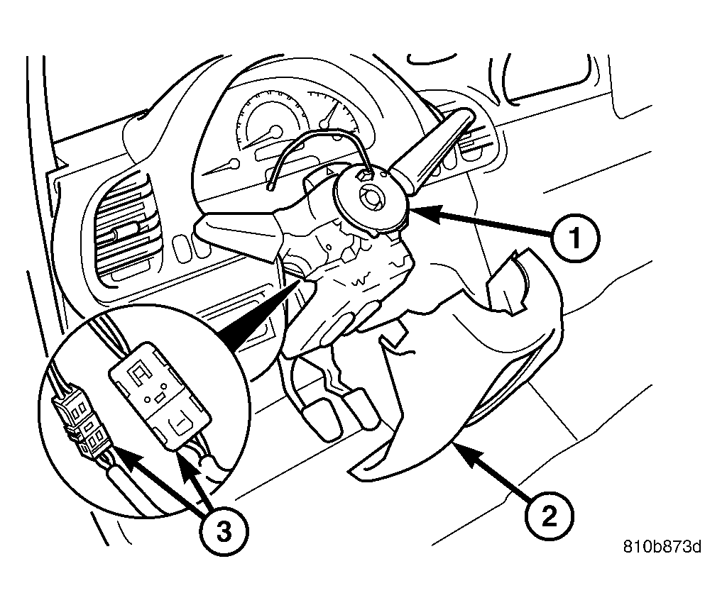 1 - MULTI-FUNCTION SWITCH 2 - FUSE BLOCK 3 - CLOCKSPRING LOWER PIGTAILS (2) - Reinstall the steering column opening cover onto the instrument panel. (Refer to BODY/INSTRUMENT PANEL/STEERING COLUMN OPENING COVER - INSTALLATION) .