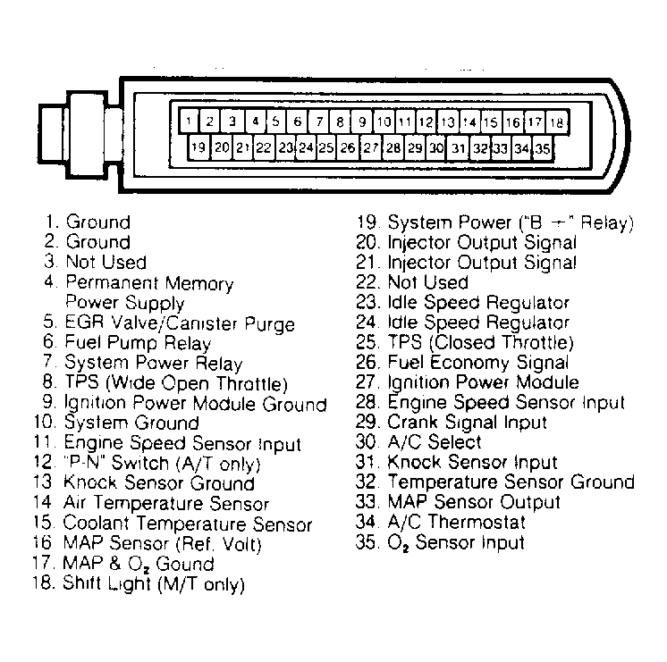 - Start and warm engine. With engine idling, voltage at MAP sensor connector terminal "B" (marked on sensor body) and ECU connector terminal "33" should be .5-1.5 volts.