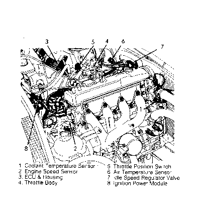 The ignition module consists of a coil and power control module. The ECU provides a signal to the power module to trigger the coil. The ignition power module is located on the center of the engine cowl. See Figure .