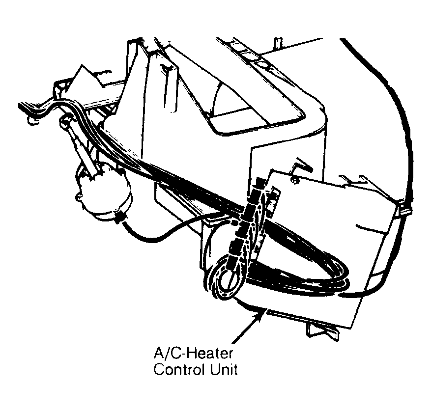| A/C-Heater Control Unit | Under dash, on right side of A/C-heater assembly. See Figure. |