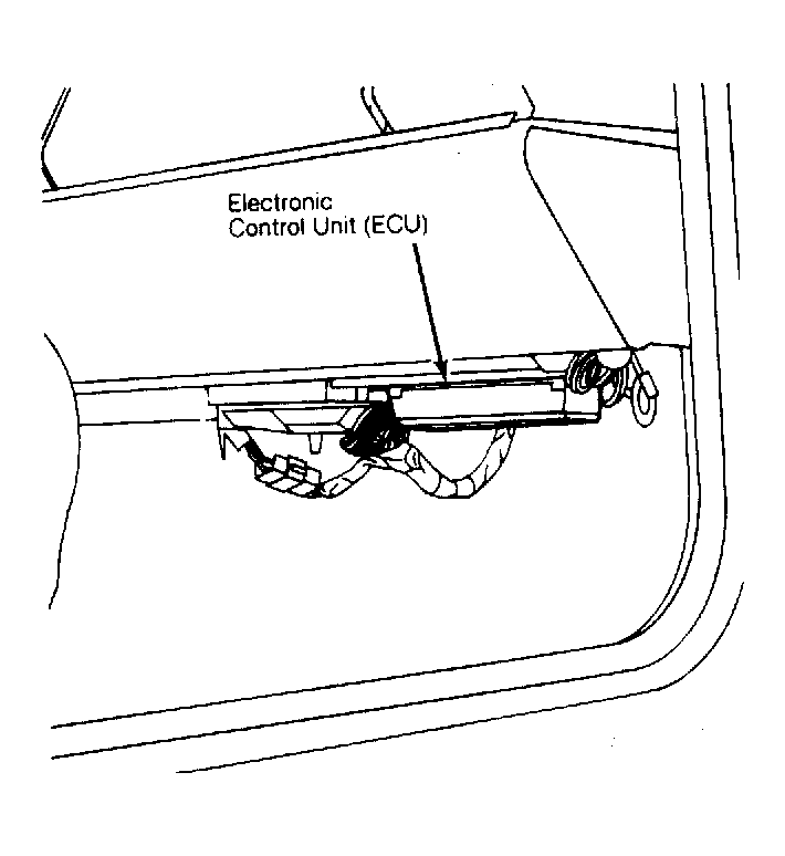The ECU controls injection by signals received from sensors which detect exhaust gas oxygen content, coolant temperature, manifold absolute pressure, engine speed and air/fuel temperature. The ECU processes this information to determine engine operating conditions. It then provides output control signals to regulate air/fuel ratio, ignition, idle speed and emission control devices. This permits optimum engine performance with minimum emissions. The ECU adjusts automatically for changes in altitude. The ECU is located under the instrument panel on the passenger side of the vehicle. See Fig 1 .