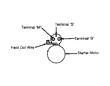 - Disconnect field coil wire from terminal "M" at starter solenoid. See Fig 1. Connect jumper wire between positive battery terminal of 12-volt battery and terminal "S" of solenoid.
