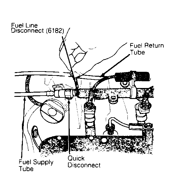 - Remove fuel tank filler cap to relieve fuel tank pressure. Remove Black fuel supply tube from fuel rail using Fuel Line Disconnect (6182). See Fig 1 .