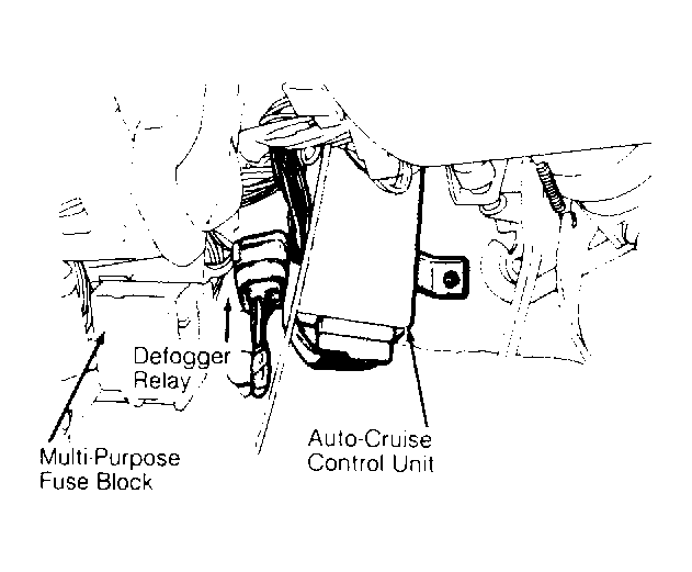 | Auto-Cruise Control Unit | Under left side of dash, next to fuse block. See Figure & Figure . |