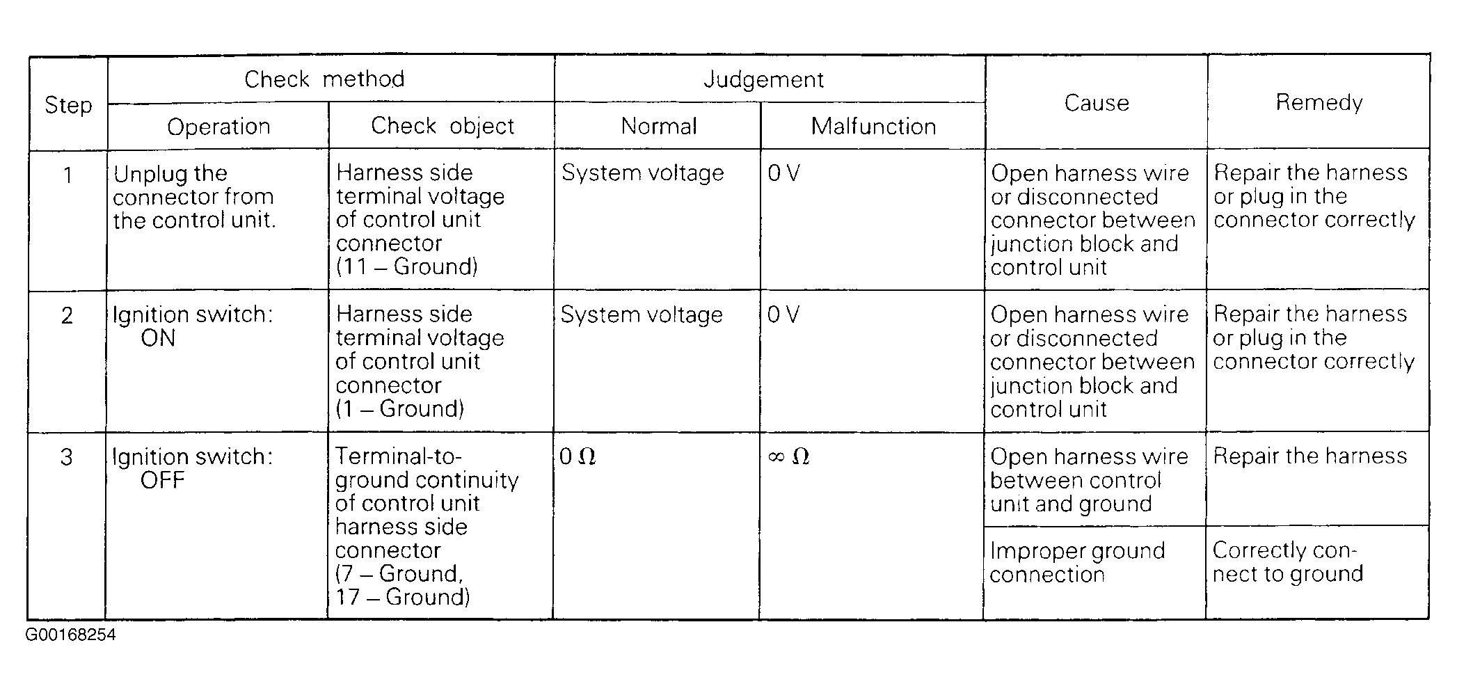 | Chart No. 1 | Control Unit Power Supply & Ground Circuit | Fig 1 | ||