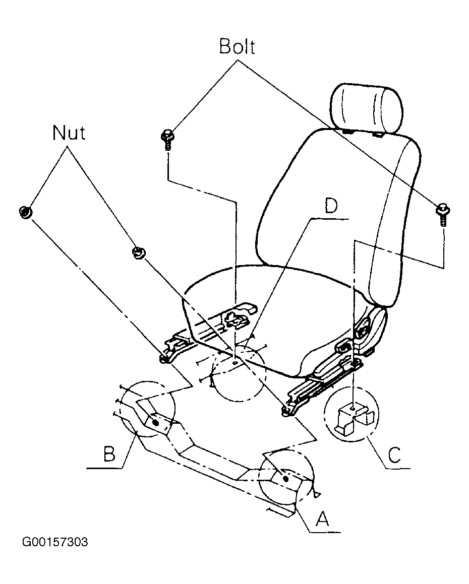 Front Seat Mounting Bolts (C & D) (2) 25-40 (35-55)