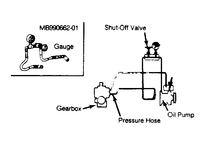 - Close and open the valve to measure oil pump pressure. If not within specifications, replace power steering pump. Refer to the OIL PUMP PRESSURE SPECIFICATIONS table. Install pressure hose. Bleed system.