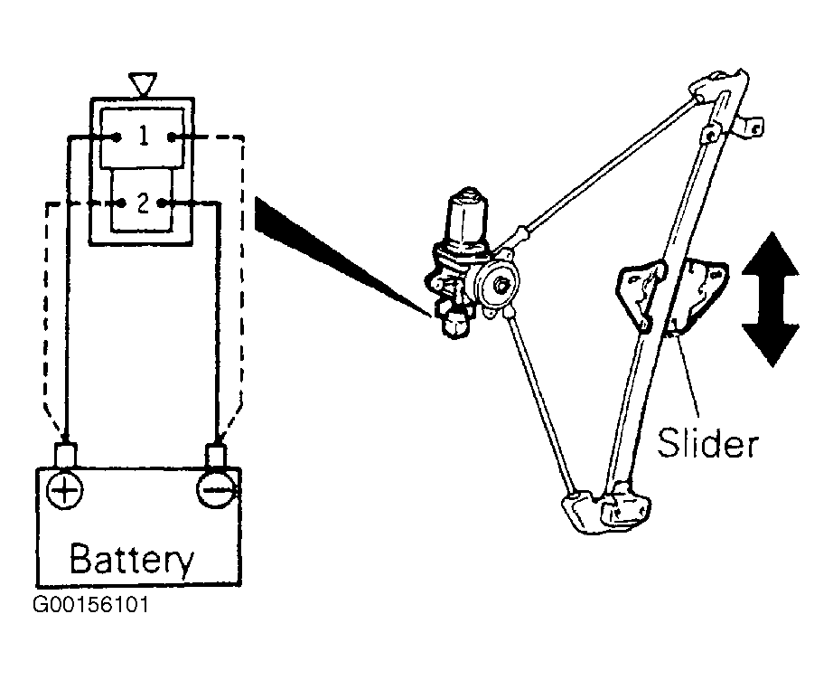 - Connect the motor terminal directly to the battery and check to be sure that the slider moves smoothly. See Fig 1 .