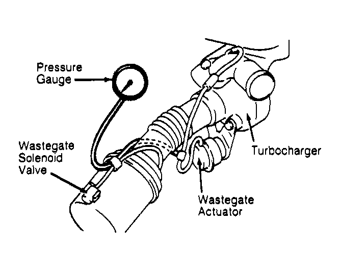- If pressure gauge reads higher than specified, check wastegate actuator. See WASTEGATE ACTUATOR TEST. Replace wastegate actuator as required. If pressure gauge reads lower than specified, go to next step.