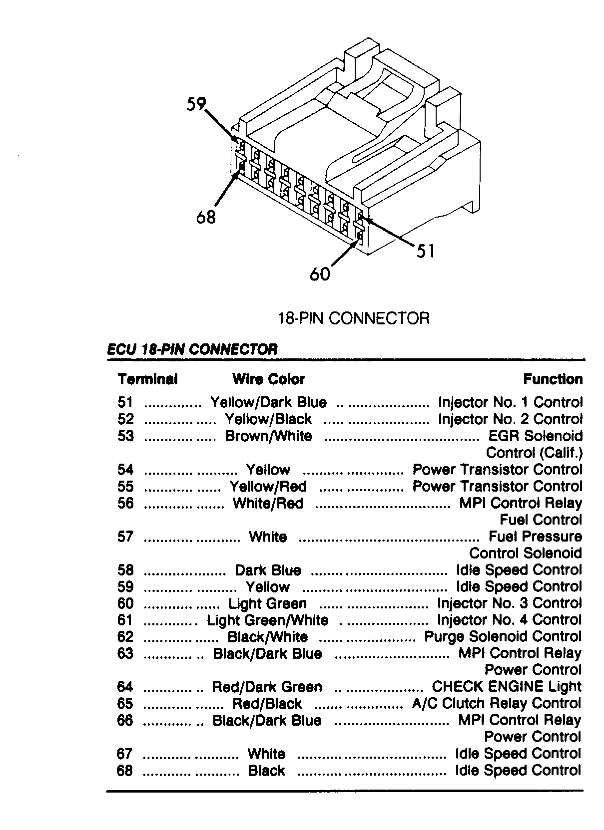 | 56 | White/Red | MPI Ctrl Relay Fuel Ctrl |