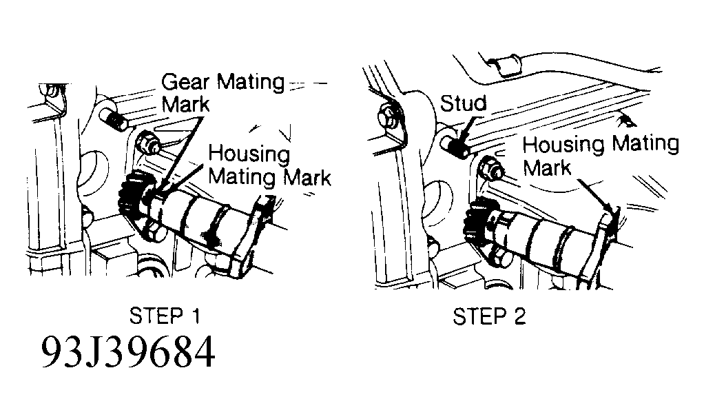 3. Install distributor to engine while aligning housing mating mark with center of distributor installation stud. Perform STEP 2. See Fig 1 .