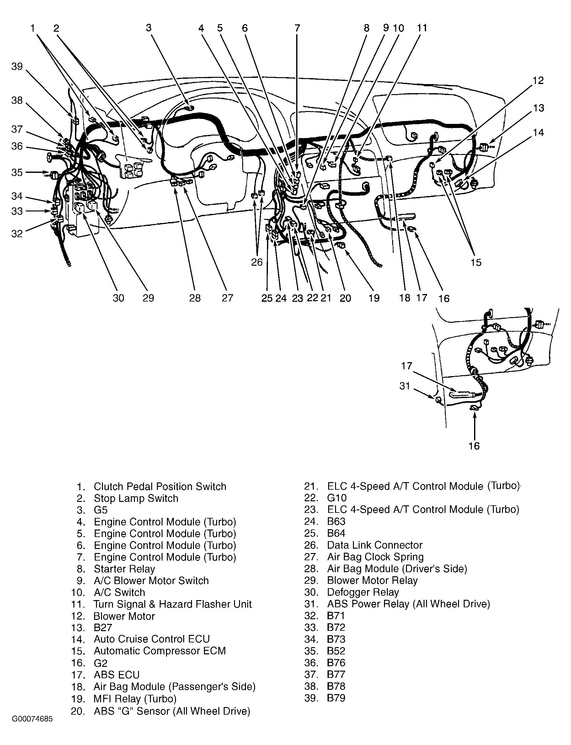 | Engine Control Module (Turbo) | Under center console. See Figure . |